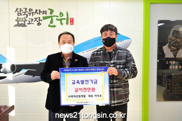 ㈜회덕산업개발 이영호 대표는 지난 6일 군위군청을 방문하여 지역의 교육발전과 인재양성을 위한 교육발전기금 2,000만원을 기탁했다.