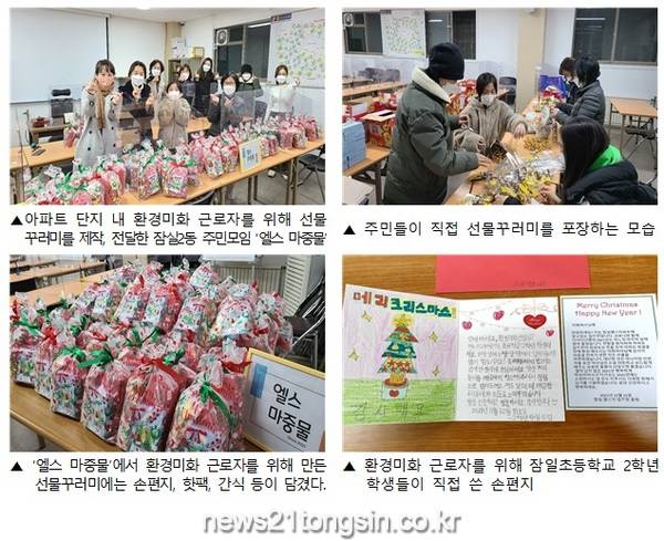 이를 위해 그동안 SNS를 통해 손편지 작성 및 전달에 참여할 주민들을 모집했다. 아이부터 어른까지 선물 구매부터 포장, 전달까지 직접 참여하며 이웃들의 따뜻한 겨울나기 준비에 정성을 보탰다. 특히 잠일초등학교 2학년 6반 학생들까지 환경미화 근로자들에게 전하는 편지 작성에 참여해 훈훈함을 더했다.