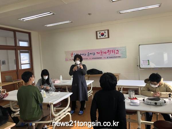 이번 겨울계절학교는 공예, 도예, 체육, 미술 등 특수교육대상학생들의 장애 특성 및 요구에 따른 프로그램으로 군위학생문화예술체험장에서 진행되었으며 학생들이 성취감과 만족감을 느끼며 다양한 체험과 경험을 하는 기회가 되었다. 계절학교에 참여하는 학생 및 교사들은 코로나19 감염 예방을 위해 개인위생수칙을 철저히 준수하며 활동에 참여하였다.