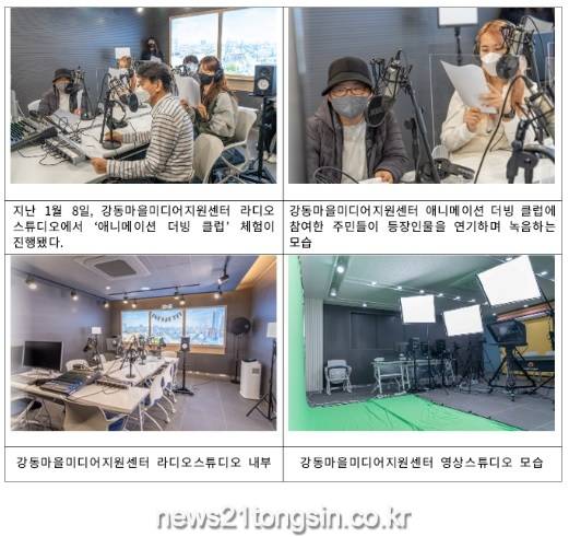 강동마을미디어지원센터는 아나운서, 라디오DJ, 성우 등 다양한 체험 프로그램과 영상 편집, SNS 운영 등 주민의 미디어 역량 강화를 위한 맞춤 미디어 교육을 운영하고, 콘텐츠 제작에 필요한 스튜디오 시설 대관과 20여 종의 촬영?음향 장비를 대여해 준다. 보다 자세한 내용은 센터 홈페이지(gdmedia.or.kr)에서 확인할 수 있다.