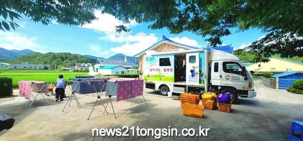 ‘찾아가는 빨래방서비스’는 2.5톤 트럭에 세탁기 4대와 전기온수기, 발전기‧급수탱크 등을 설치해 현장을 찾아가 바로 세탁서비스를 제공하는 사업으로, 2015년 시범사업을 시작으로 2017년부터 전 시군으로 확대 운영하고 있다.