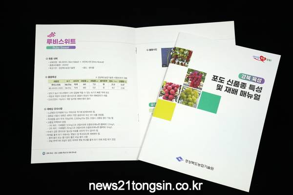 경상북도농업기술원은 소비자가 좋아하는 씨 없이 껍질째 먹을 수 있는 포도 신품종 교재 ‘경북 육성 포도 신품종 특성 및 재배 매뉴얼’을 발간해 농가에 보급할 계획이다.