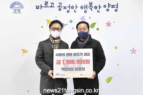 이에 정동균 양평군수는 “코로나19와 강추위로 모두가 힘든 시기에 따뜻한 마음과 함께 기부를 해주셔서 감사하다. 양평사랑 회원 모두와 백안4리 마을 주민 한분 한분의 온기를 잘 전달하도록 하겠다.”고 고마움을 전했다.