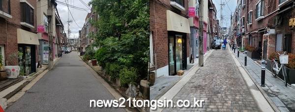 그 결과 망리단길과 이어지는 월드컵로 19길은 보행자와 차가 함께 다녀 안전사고 우려가 있던 골목에서 보행자 중심의 골목으로 재조성 됐다.