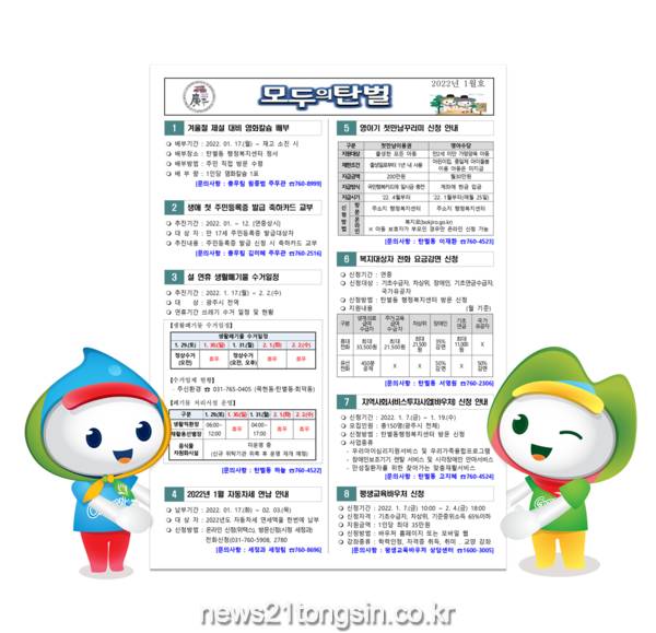 1월호에는 △겨울철 제설 대비 대책 △주민등록 발급 축하카드 교부 △설 연휴 생활폐기물 수거 일정 △자동차세 연납 △영아기 첫 만남 꾸러미 △복지대상자 전화 요금감면 △지역사회 서비스 투자사업 △평생교육 바우처 등 주민들에게 혜택이 되는 주요 정책을 수록했다.