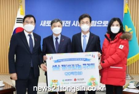 농협중앙회 대전지역본부는 19일 대전시청을 찾아 어려운 이웃들이 따뜻한 겨울을 보내는데 사용해달라며 농축산물 꾸러미 400세트(2천만 원 상당)를 대전사회복지공동모금회에 기탁했다.