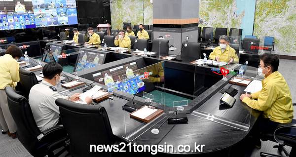이철우 경북도지사는 21일 국무총리 주재 중앙재난안전대책본부 영상회의에서 시군, 보건소 방역요원들의 스트레스 완화와 사기진작 3종 세트 등에 대해 건의했다고 밝혔다.
