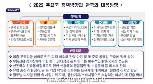 전국경제인연합회(이하 전경련)은 세계 주요 5개 경제권(미국, 중국, 유럽, 일본, 아세안)의 2022년 정책방향과 이에 대한 한국의 대응방안을 지난 20일 제시했다.