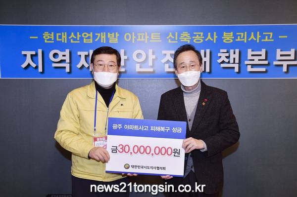 대한민국시도지사협의회가 현대산업개발 아파트 신축공사 붕괴사고 수습 지원금 3000만원을 전달했다.