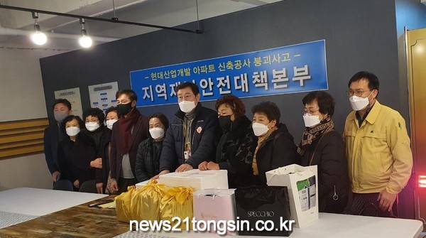 오월 어머니들이 26일 오후 현대산업개발 아파트 신축공사 붕괴사고 현장을 찾아 피해자 가족 및 사고수습 관계자들에게 찰밥을 전달하고 위로했다.
