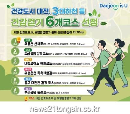 이와 함께 지난해 건강도시 포럼을 개최해 대한민국 건강도시 전문가를 대상으로 대전의 건강도시 발전방향을 모색하는 자리도 마련했다. 걷기좋은 도시를 만들기 위해 모바일앱 등을 통한 걷기사업을 추진하고 3대하천 중심으로 걷기좋은 걷기코스 개발 및 건강영향평가를 실시했다.