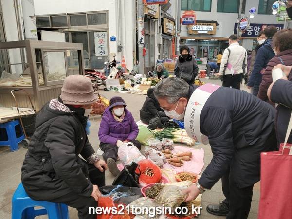 이번 설맞이 전통시장 장보기 행사는 코로나19의 장기화로 인한 경기침체로 힘들어하는 지역 전통시장 상인들에게 조금이나마 도움을 주고 전통시장 활성화를 도모하고자 실시됐다.
