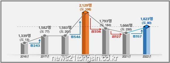 올해 시험의 가장 큰 변화는 코로나19 장기화에 따라 보건인력 충원의 시급성을 감안하여 지난해 5월에 실시한 ‘간호직’ 필기시험을 올해는 앞당겨 4월에 실시하며, 선발예정 인원도 지난해 74명에서 올해 105명으로 확대하였다.