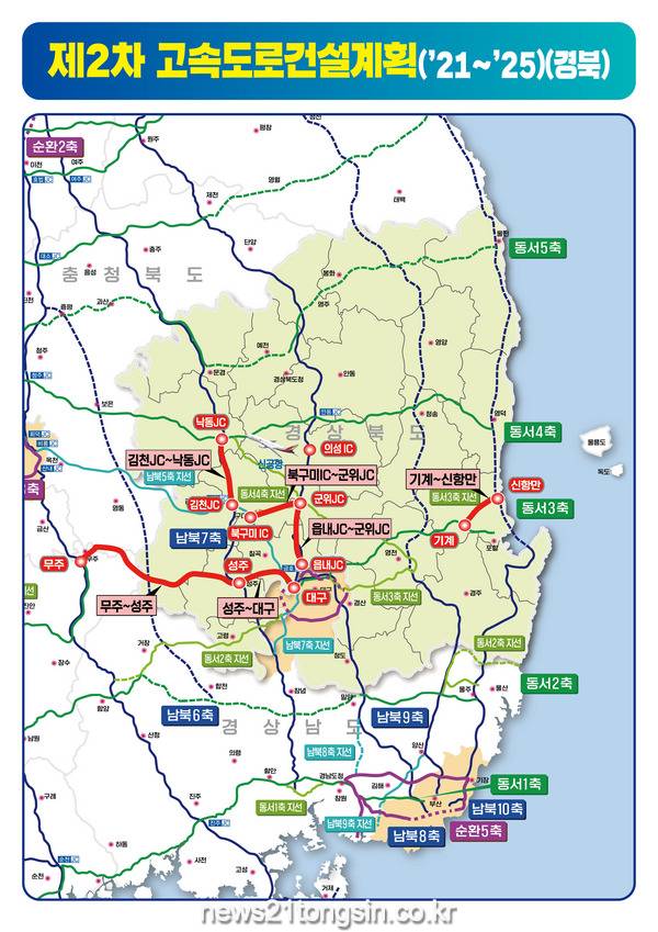 경상북도는 28일 국토교통부가 ‘제2차 고속도로건설 5개년 계획(2021~2025)’을 확정해 발표했다고 밝혔다.