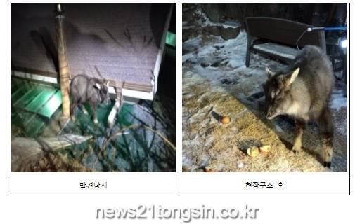 강원소방본부(본부장 윤상기)는 2월 3일 04시 43분 횡성군 청일면에서 천연기념물 217호인 산양을 구조하였다고 밝혔다.