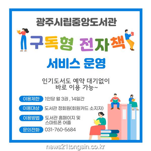 광주시립중앙도서관은 코로나19로 인해 비대면 자료서비스에 대한 요구가 늘어나는 상황에 대응하고자 2월부터 ‘구독형 전자책 서비스’를 운영한다고 7일 밝혔다.