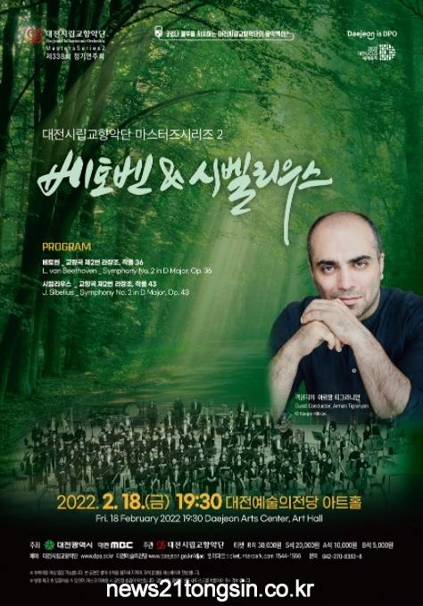 대전시립교향악단은 오는 2월 18일(금) 환희와 희망을 그린 베토벤과 신비로운 시벨리우스의 교향곡 제2번을 선보인다.
