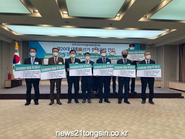 김현태 자경위원장협의회 회장(경상남도자치경찰위원장), 이병록 자경위원장협의회 수석부회장(인천광역시자치경찰위원장) 등 전국 18개 자경위 위원장 일동은 2월 10일 한국프레스센터에서 대선 후보들에게 건의할 정책공약을 발표했다.