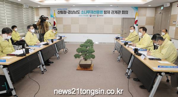 경남도는 15일 오후 도청 중앙회의실에서 하병필 경남도지사 권한대행, 최병암 산림청장, 박일호 밀양시장 등이 참석한 가운데 소나무재선충병 피해 확산을 방지하기 위한 관계관 회의를 개최했다.