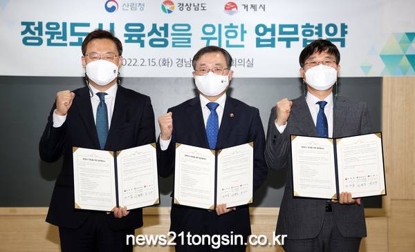 경남도는 15일 오후 도청 도정회의실에서 하병필 경남도지사 권한대행, 최병암 산림청장, 변광용 거제시장이 참석한 가운데 정원도시 육성을 위한 업무협약을 체결했다고 밝혔다.