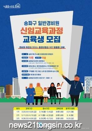 선발된 교육생은 3월 23일~25일(3일) 동안 경비업법, 호송경비 실무, 사고예방대책 등의 교육을 받게 된다. 이수자에겐 수료증을 발급하고, 송파일자리센터를 통해 경비업종 취업 연계를 지원할 계획이다.