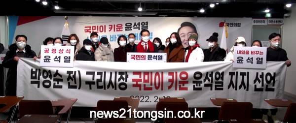 박영순 전 구리시장이 국민의힘 중앙 당사에서 윤석열 후보 지지를 선언하고 국민의힘 경기도당에 전격 입당원서를 제출했다.