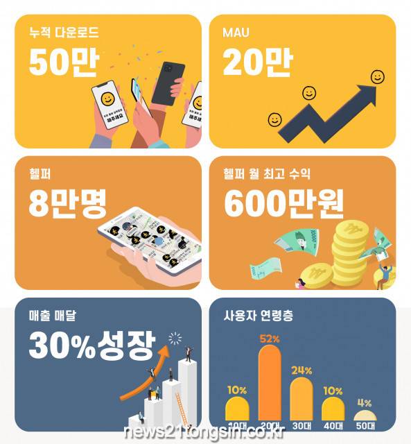 해주세요는 최근 헬퍼가 8만명을 넘어섰다. 최다 수익금을 가져간 헬퍼는 지난달 약 600만원의 수익을 올리기도 했다. 주요 사용자 62%는 10~20대인 Z세대다. 해주세요는 출시 이후 매월 매출이 30% 안팎으로 성장하며, 설립 6개월 만에 흑자 전환에 성공하기도 했다.