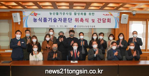 경상북도는 22일 농업기술원에서 농산물 가공산업의 발전과 식품시장에서의 경쟁력 확보를 위해 분야별 외부전문가 23명을 초청해 농식품기술자문단 위촉식 및 간담회를 가졌다고 밝혔다.