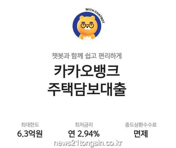 한편, 카카오뱅크 모바일 주택담보대출은 ‘KB시세’ 9억 원 이하의 수도권(서울‧경기‧인천) 소재 아파트를 대상으로 하며 1개월 이상의 근로 소득자나 소득 증빙이 가능한 사업 소득자를 대상으로 한다. 또한 소유(예정) 주택은 부부 공동명의도 가능하다.