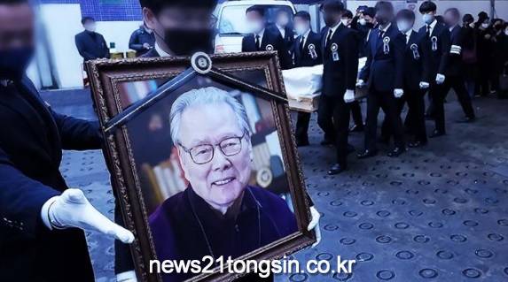 한편 고인이 영결식장으로 이동하는 중 대한민국역사박물관을 지날 때 대한민국역사박물관 외벽에 설치된 '광화벽화'에는 고인의 생전 영상과 추모 문구를 표출해 애도의 뜻을 더했다.