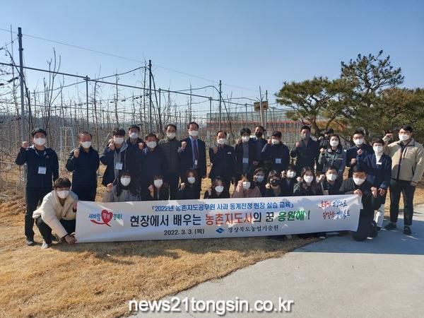 경북농업기술원은 3일 영주시농업기술센터 과수시험장에서 시군 농촌지도공무원 22명을 대상으로 사과 동계전정 현장 실습 교육을 추진했다고 밝혔다.