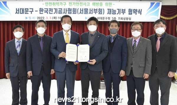 서대문구가 관내 취약 가구에 대한 전기 안전사고 예방활동 강화를 위해 최근 한국전기공사협회 서울시서부회(회장 김성태)와 재능기부 협약을 맺었다.