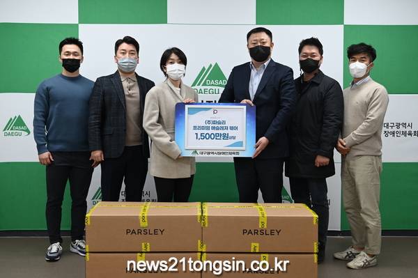 (뉴스21통신) 유재원기자 = 대구광역시장애인체육회는 8일 프리미엄 스포츠웨어 전문 브랜드 ㈜파슬리(대표 손주연)로부터 1,500만원 상당의 운동복을 후원받았다.