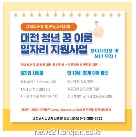 대전시가 청년의 취업욕구와 기업의 다양한 인재요구를 동시에 만족시키는‘대전청년 꿈이룸 일자리 지원사업’을 본격 추진한다고 밝혔다.