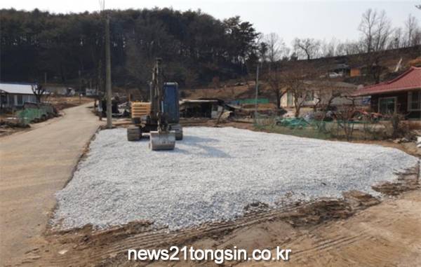 우선, 마을 전체 주택이 산불로 타버린 북면 신화 2리에는 임시조립주택 20동을 설치하기로 하고 720㎡정도의 부지를 조성 완료했다.