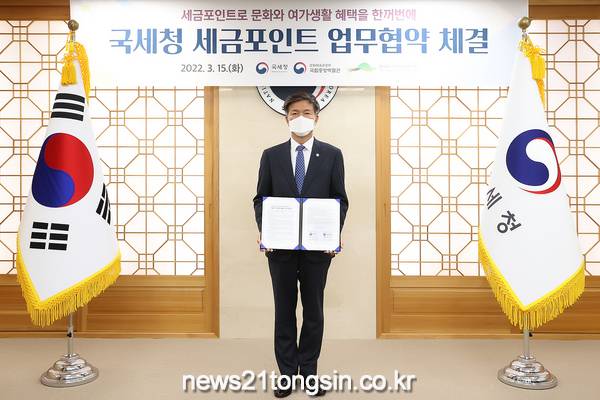 국세청(청장 김대지)은 '22. 3. 15.(화) 세금포인트 사용을 촉진하고 성실 납세하는 국민의 건강한 문화·여가생활을 진흥하기 위해 국립중앙박물관(관장 민병찬), 한국수목원정원관리원(이사장 류광수)과 업무협약(MOU)을 각각 체결했다.