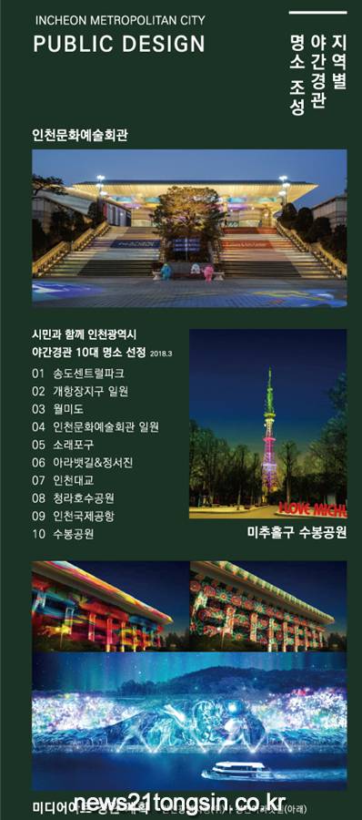 민선7기 인천시는 시민들에게 아름답고 안전한 밤거리를 제공하기 위해 2018년 시민들과 함께 인천광역시 10대 야간명소를 선정하고 매년 2~3개의 사업을 추진해왔다.