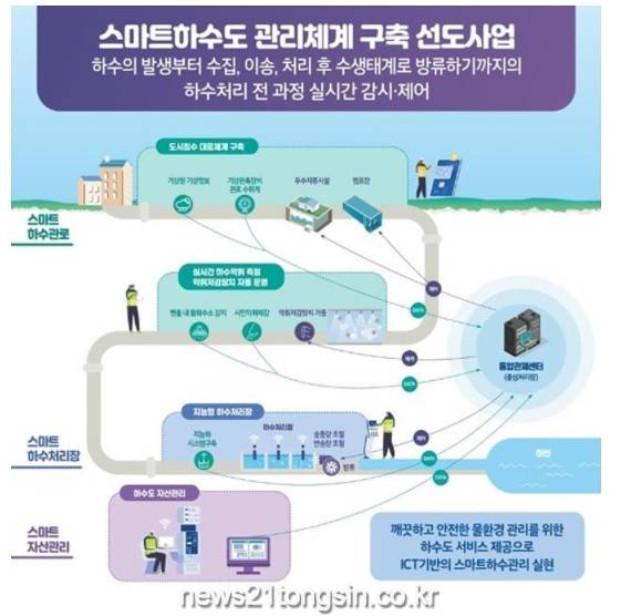 스마트하수도 관리체계 구축사업은 스마트 하수처리장, 스마트 하수관로(도시침수 대응, 하수악취 관리), 하수도 자산관리 등 총 4개 분야로 추진된다.
