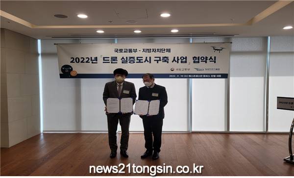 인천광역시는 2022년도 「드론 실증도시 구축사업」과 「드론 규제 샌드박스 사업」이 정부 공모에 선정돼, 16일 국토교통부와 세종시 베스트웨스턴 플러스 호텔에서 협약을 체결했다고 밝혔다. 이 중 「드론 실증도시 구축사업」에는 9개 자치단체가 선정됐으며, 광역시‧도 중에서는 유일하게 인천이 선정됐다.