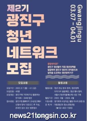 김선갑 광진구청장은 “우리 구 청년들이 체감할 수 있는 광진형 청년정책을 실현하고자 제2기 ‘청년 네트워크’ 위원을 모집한다”라며 “청년들의 적극적인 참여와 활발한 활동을 기대한다”라고 말했다.