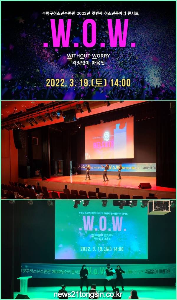 부평구 청소년수련관은 지난 19일 4층 공연장에서 문화예술 청소년동아리활동을 활성화를 위한 ‘2022 청소년동아리콘서트 W.o.W.(와우)’를 성황리에 개최했다.