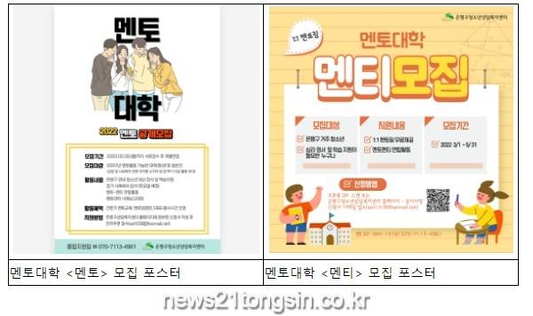 서울 은평구(구청장 김미경)는 청소년 대상으로 심리정서와 학습 멘토링을 제공하는 프로그램인 ‘멘토대학’을 오는 26일 운영한다고 밝혔다.