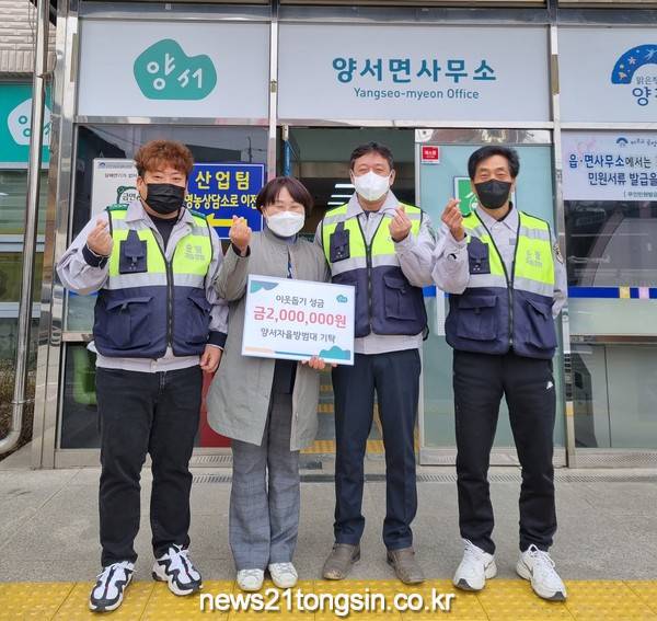 지난 24일, 양평군 양서자율방범대(대장 곽태호)에서는 양서면 저소득층을 위해 써달라며 성금 200만 원을 기부했다.