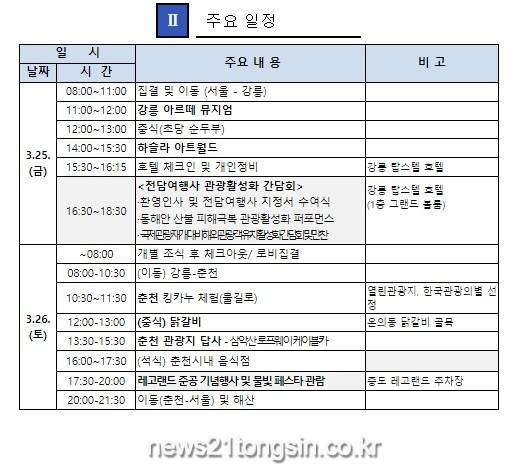 또한, 여행사 대표단은 동해안 산불지역 활성화를 위해「GO! EAST! (가자 동해안으로)」캠페인 동참과 25일부터 이틀간 강릉의 인기 관광지인 아르떼 뮤지엄과 하슬라 아트월드를 방문하고, 춘천의 킹카누, 레고랜드, 삼악산 로프웨이 등 신규상품을 개발하기 위한 답사도 진행된다.