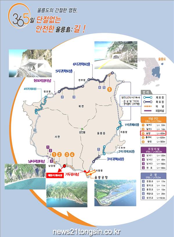 경북도는 28일 울릉 서면 남양리에서 울릉도 일주도로 2단계 건설공사 준공을 기념하는‘남양터널 개통식’을 가졌다.