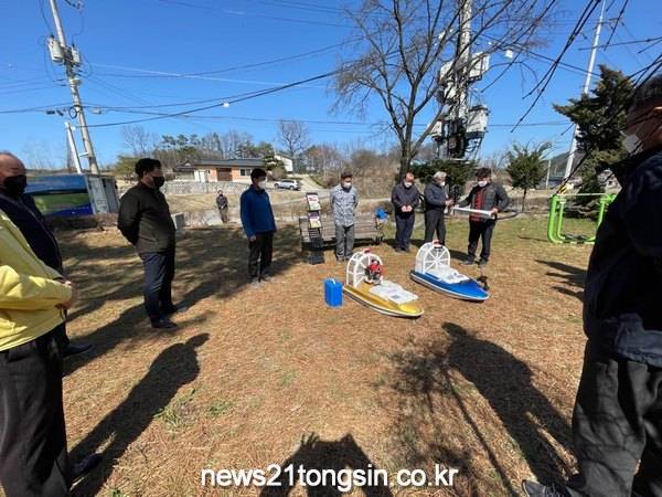 여주시농업기술센터(소장 안치중)는 지난 28일 세종대왕면 신지리에서 2022년 추진하는 농업인학습단체 경쟁력제고사업 추진과 관련하여 농업용 무인전동보트 시연회를 개최하였다.