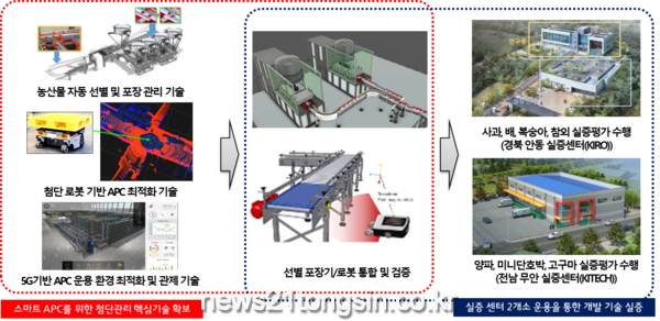 이를 통해 ▷산지유통센터에서 이루어지는 농산물의 선별․세척․포장의 자동화 기술개발 ▷5G 기술을 활용한 산지유통센터내 물류 최적화 및 관제 기술개발 ▷신선 농산물 풀필먼트(Fulfillment)* 산지유통센터(APC)** 구축(경북 안동, 전남 무안) 등이 이뤄지게 된다.