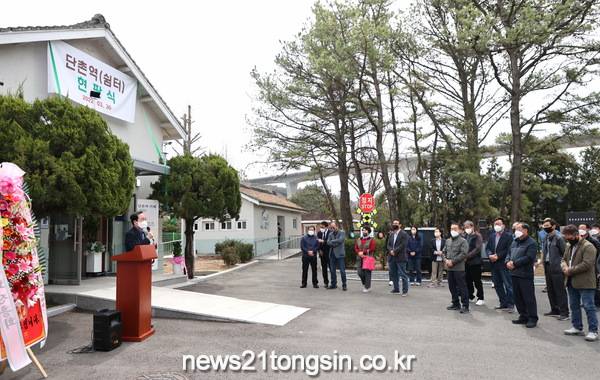 의성군 단촌면주민자치회(회장 마창운)는 2020년에 폐역이 된 단촌역을 카페(쉼터)로 새롭게 단장하고 3월 30일 오전 11시에 주민자치위원 등 60여 명과 함께 단촌역 카페(쉼터) 개장식을 가졌다.