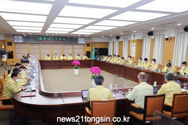 허태정 대전광역시장은 5일 시청 대회의실에서 열린 4월 확대간부회의에서 민선7기 사업성과가 민선8기로 연결될 수 있도록 흔들림 없는 시정 추진을 당부했다.