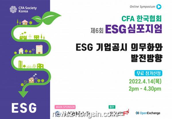 CFA한국협회(CFA Society Korea, 회장 박천웅)는 4월 14일(목) 오후 2시부터 ‘ESG 기업공시 의무화와 발전 방향’이란 주제로 제6회 ESG 심포지엄을 개최한다.